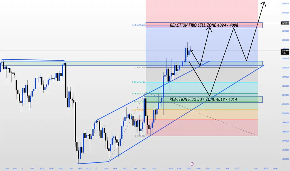 SELL TARGET (FIBO Ext.) 4094 - 4098 (フィボリアクトゾーン参照) フィボ拡張ターゲット。強気の勢いが維持される場合、これはロングエントリーの次の潜在的な利益確定(TP)ターゲットです。