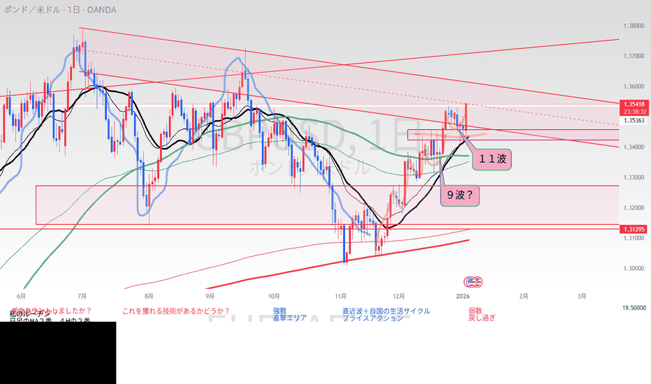 週足のレジスタンスライン付近でもあるし日足ダウの勢いも弱まりそうで狙いづらい中、11波を形成した