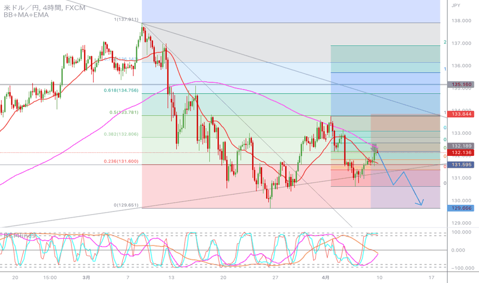 上抜けられないと再び130円付近を目指して下落すると思われます。