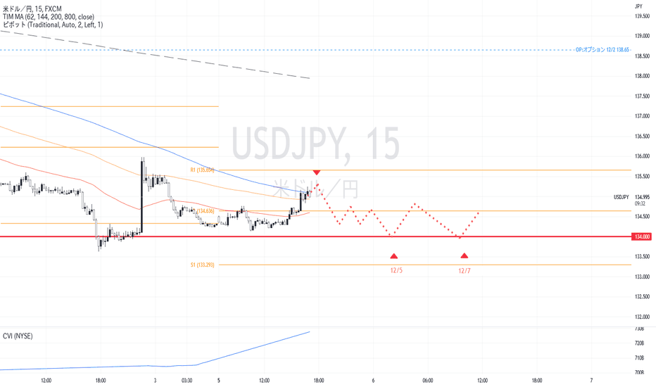 USDJPYは引き続き売り目線ですが、本日(12/5)と12/7に134.00円のOP:オプションがあり規模としては中程度。下落していくにしてもそこが下値の抵抗帯になります。下にブレイクしてから売っても遅くないですし、今日明日にかけての高値付近で売り方向でさっと穫るのもよいでしょう。年末、クリスマスに向けて流動性が低くなり、逆にボラティリティがあがってくる場合があります。利益が出たら「適度に」さっと利確するようにしたほうが賢明です。あのとき利確しておけば...という後悔が出るのもこのような時期です。