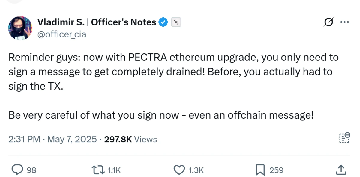 “We believe it will be the most popular attack vector regarding these breaking changes introduced by Pectra,” Rudytsia said. “From now on, users have to carefully validate what they are going to sign.”