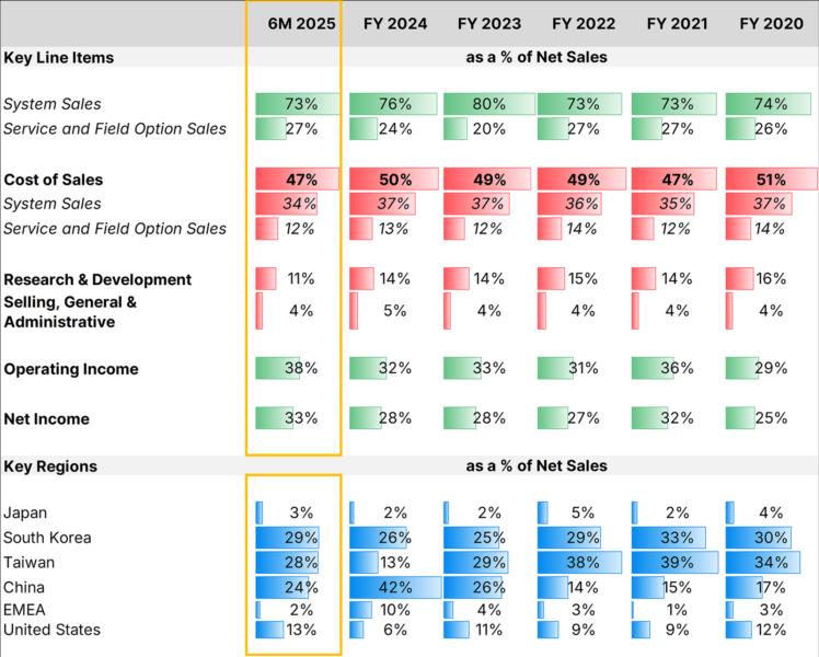 Taiwan had, so far, been the largest destination for ASML's machines since 2020, except for 2024 when China alone accounted for nearly half of net sales. As of 6M 2024, China's share had effectively halved from that number - thus making the country responsible for nearly quarter of net sales.