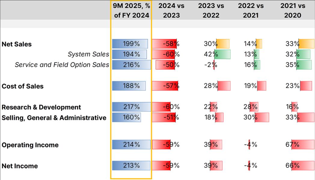 The massive spurt in revenues in 2024 might be partially explicable that Chinese chipmakers might have been stockpiling equipment at least before such gaps are closed. ASML's CEO Christophe Fouquet quoted in the earnings' press release, "we expect China customer demand, and therefore our China total net sales in 2026 to decline significantly compared to our very strong business there in 2024 and 2025."