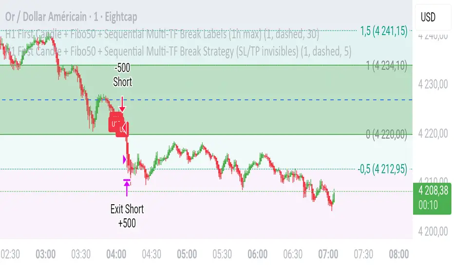 Analyse 100% sur l'action du prix en regroupant timeframe H1, U15 et U5 sur un seul graphique