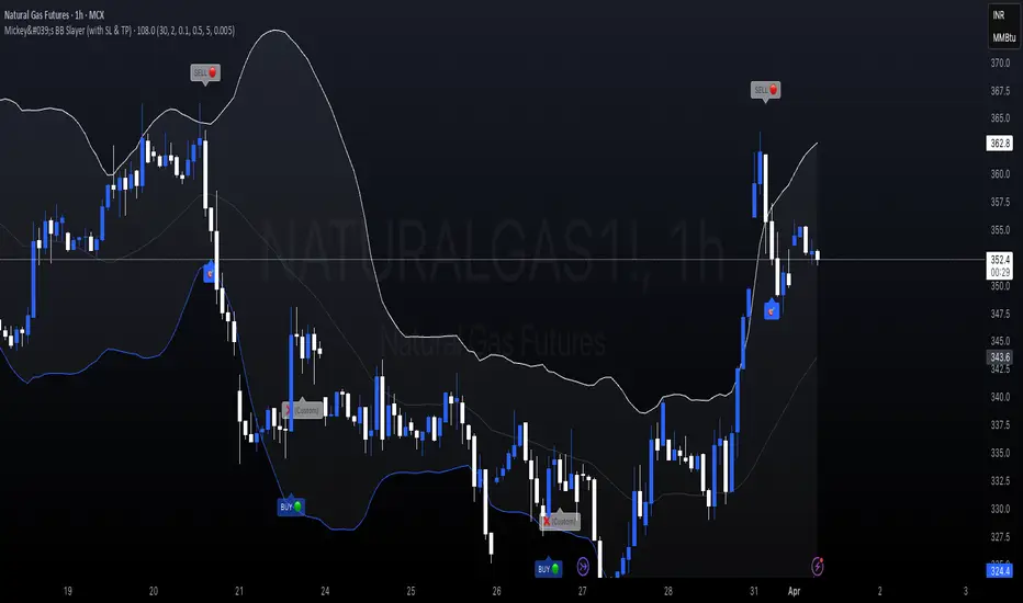 Mickey's BB Slayer (with SL & TP)This indicator combines the strength of Bollinger Bands with engulfing candle patterns to generate smart reversal signals. It's designed to help you catch clean entries at the edge of volatility expansion.