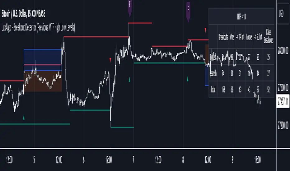 更新済 Breakout Detector (Previous MTF High Low Levels) [LuxAlgo]