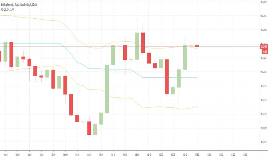 Updated color coding. Blue line is baseline, yellow lines are ATR bands.Also updated calculation for ATR bands as they were improperly calculated with EMA previously.