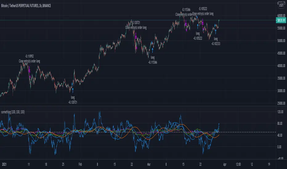 The entry for long is when all oscilators are above 50, and the exit is when they are below 50 + plus some minor modifications