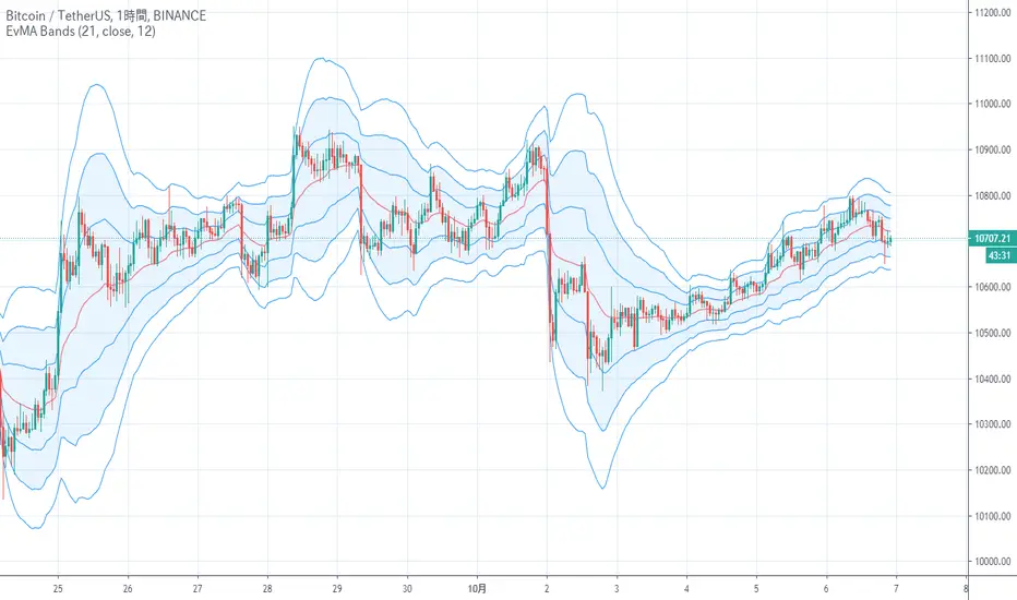 ボリンジャーバンドを指数平滑出来高加重し、最終進化したような指標です