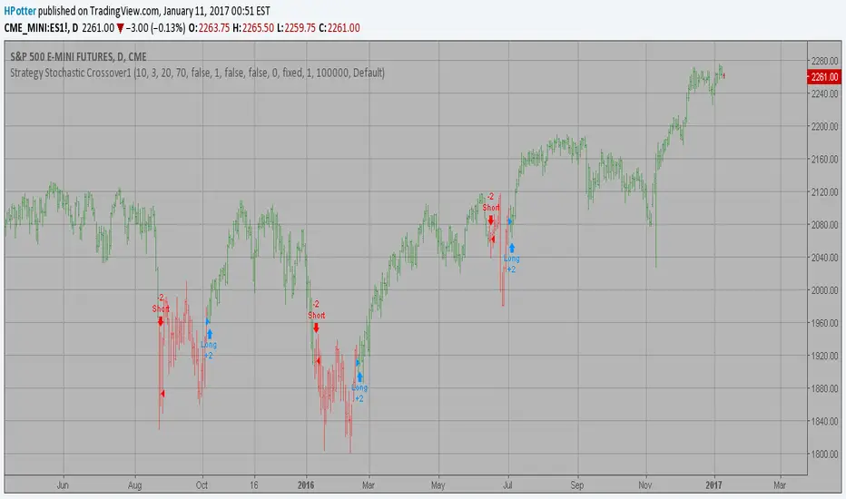 bar when the %K line crosses below the %D line and both are above the Overbought level.