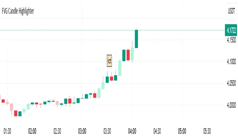 This indicator highlights only the true Fair Value Gap (FVG) creator candle — the middle candle in a 3-bar FVG formation — with zero clutter.