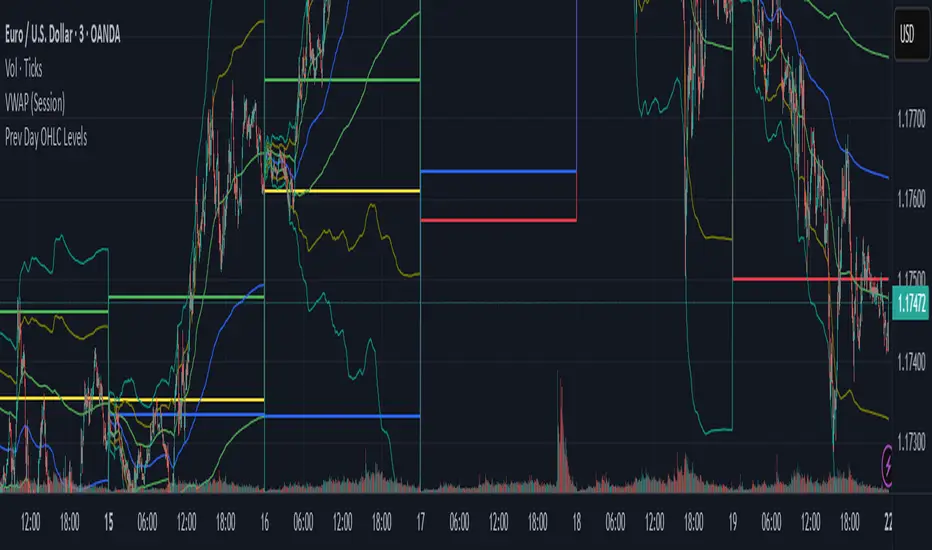 This script automatically draws the previous day’s Open, High, Low, and Close levels on each trading day. Traders widely use these reference levels to identify key support and resistance zones, potential breakout areas, and intraday bias.