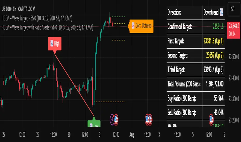 This indicator automatically detects confirmed price waves and projects smart Fibonacci-based targets for both reversals and breakouts.