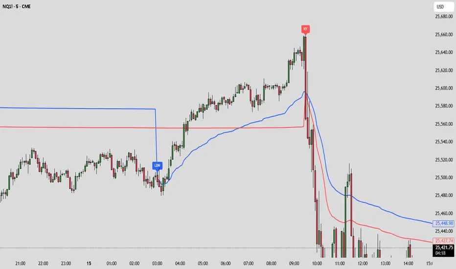 This indicator automatically anchors VWAP lines at key trading session openings. By default, it calculates separate VWAPs starting at the London Open (03:00 EST) and New York Open (09:30 EST), allowing traders to track institutional price levels from these critical market sessions.