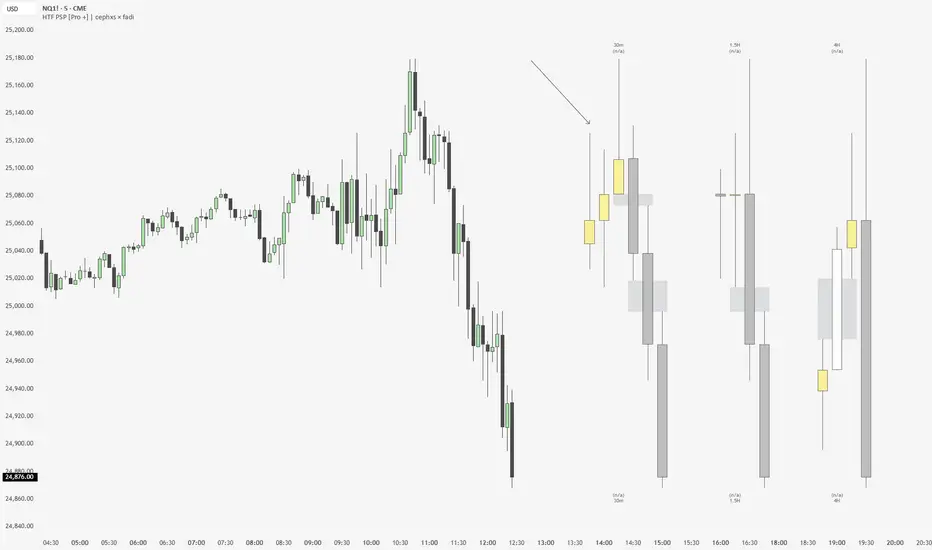 I recieved lots of requests on X to make it like this HTF indicator, so i reached out to Fadi, and he gave me permission to do so. So i forked his indicator and implemented the PSP logic i had from my indicator into his HTF candle framework. Made my work incredibly easier so propd to him.