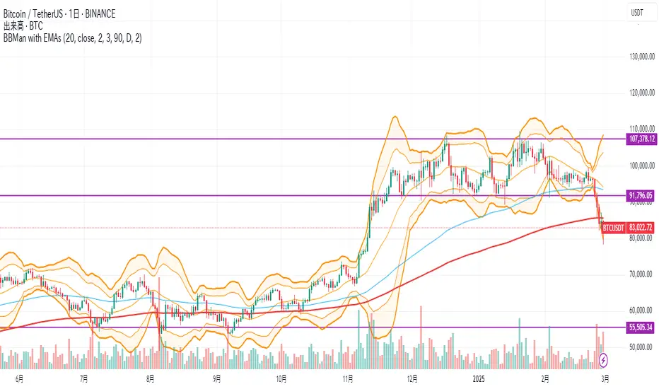 A comprehensive Bollinger Bands indicator that combines standard deviation bands (2σ and 3σ) with key EMAs (100 and 200) for enhanced technical analysis. The indicator features customizable visual elements and flexible alert conditions.