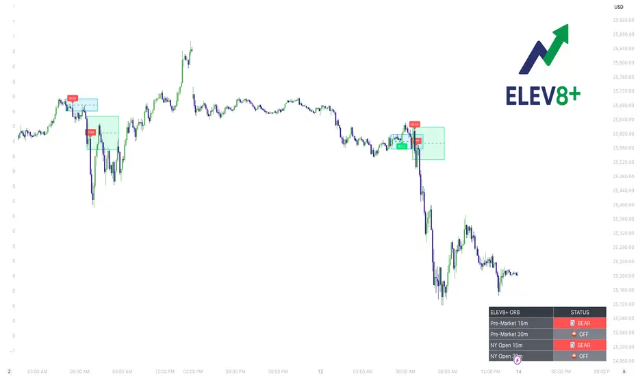 **ORB Pro - NY Opening Range Breakout [Elev8+]** is a comprehensive, professional-grade toolkit designed for intraday traders who rely on the **Opening Range Breakout (ORB)** strategy.