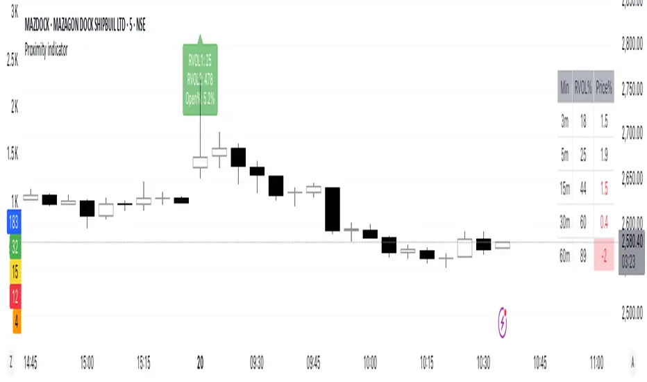 A table with two key metrics over different intraday timeframes added:RVOL % (Relative Volume %)