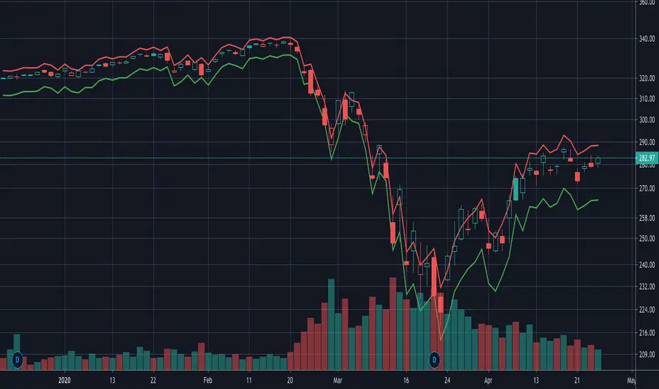 This indicator shows volume and volatility adjusted risk ranges for the price.