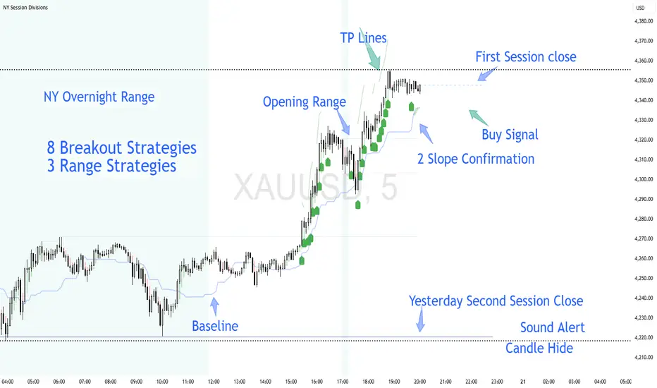 NY Session Divisions is an advanced trading indicator that professionally segments the New York trading day into precise sessions, providing institutional-grade market structure analysis with smart breakout detection and comprehensive filtering systems.