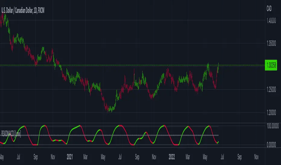 RSX of Double MACD [Loxx] is a specialized version of the classic MACD. Normally the MACD calculation ends with the difference between fast/slow EMAs, this version of MACD takes the calculation one step further by passing the MACD signal into an RSX RSI function to derive a smoother MACD bound from 0 to 100.