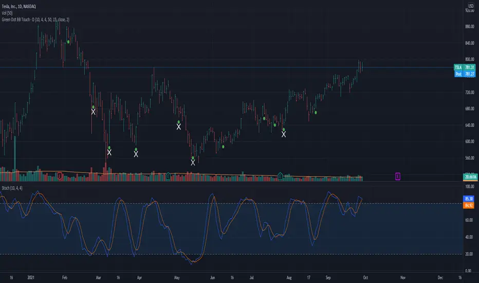 This indicator involves Stochastics and Bollinger Band indicators to provide an indication when a technically sound stock is potentially oversold and reading to resume its uptrend. This is best used in Stage 2 (Weinstein) stocks viewed on a daily chart.