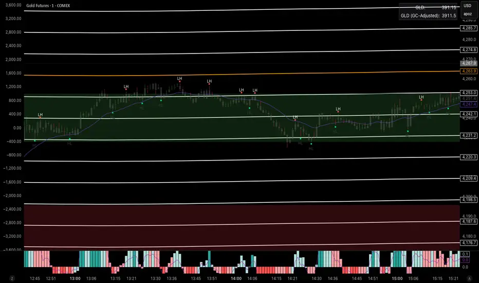 Ai converted another coders script. shows gld strike price on gc. enter current strike whole number of gld and lines appear on gc