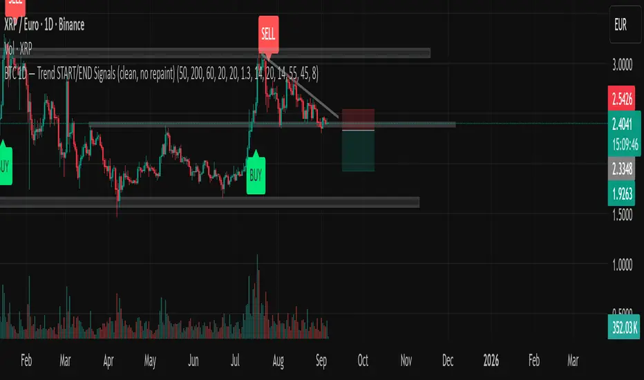 BTC 1D — Trend START/END Signals (clean, no repaint)