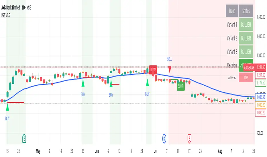 The Profitolio Swing Strategy (PSS V1.2) is a comprehensive swing trading indicator designed to identify high-probability trade setups by combining multiple technical analysis methods. This indicator helps traders capture medium-term price movements while managing risk effectively.