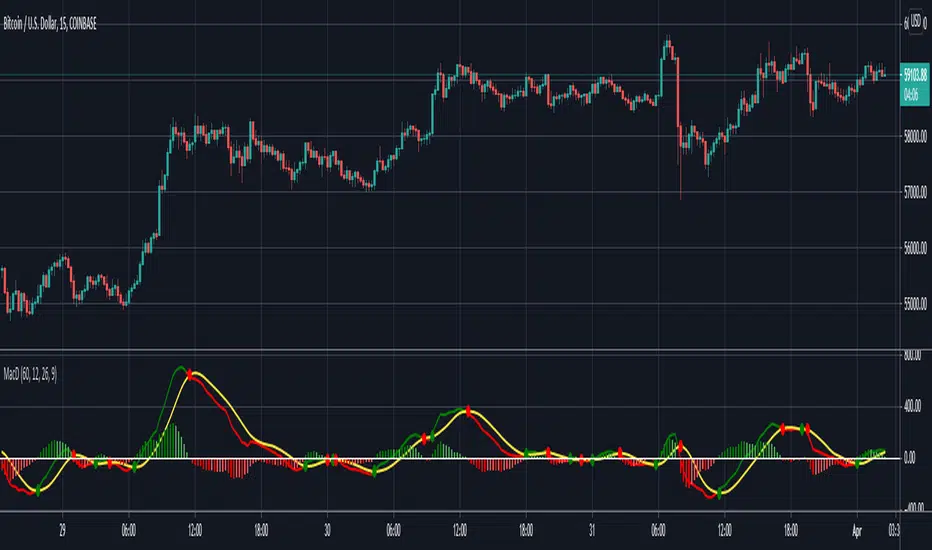 Hello everyone, this is indicator has always been my go-to MACD indicator for many years. It is such a beautiful easy to understand indicator. You can also view different timeframe resolutions which is helpful. When the MACD crosses up the signal line it is green, and when it crosses below the signal line it is red. The signal line is the constant yellow line. MACD histogram is dark green when increasing buying momentum, and you'll see the green get lighter when buy momentum is decreasing. As well, MACD histogram is dark red when increasing sell momentum, and you'll see the red get lighter when sell momentum is decreasing. I hope you guys love this macd design. Happy trading!