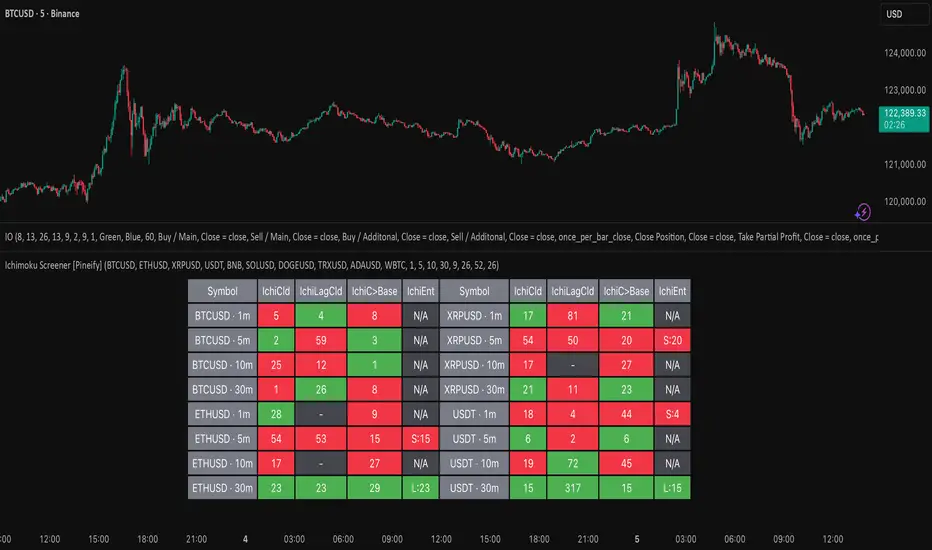 This sophisticated Ichimoku Screener represents a comprehensive approach to multi-timeframe market analysis, combining four distinct Ichimoku-based indicators into a unified screening system. Unlike traditional single-symbol indicators, this screener provides simultaneous analysis across multiple assets and timeframes, enabling traders to identify optimal trading opportunities with enhanced precision and efficiency.