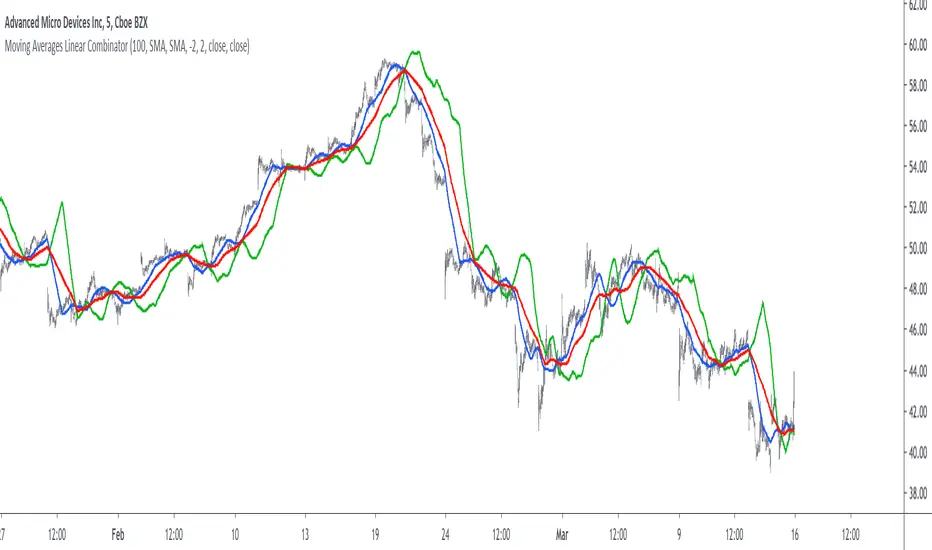 Linearly combining moving averages can provide relatively interesting results such as a low-lagging moving averages or moving averages able to produce more pertinent crosses with the price.