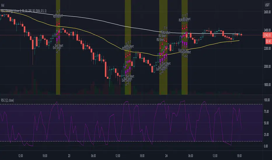 This strategy implements a simply scalping using the RSI (calculated on two periods), the slopes of two MAs ( EMA or SMA ) having different lengths (by default, I use 50 and 200).