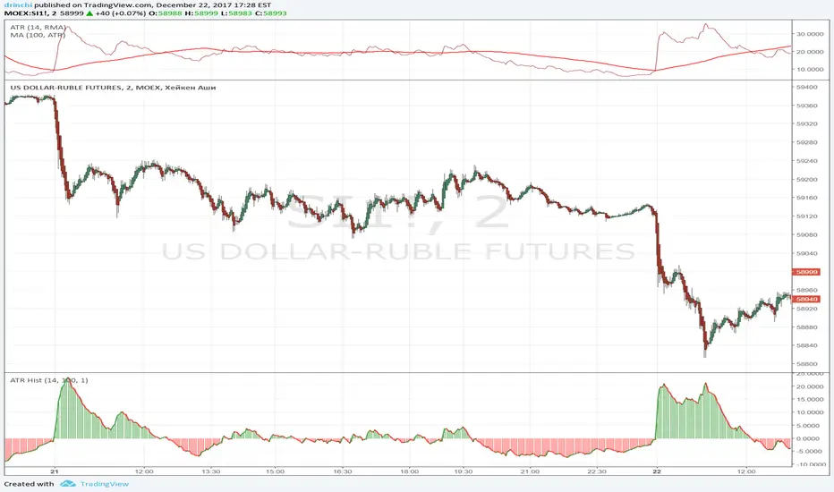 For greater visibility, a colored variable moving average (variable SMA for histogram) was added