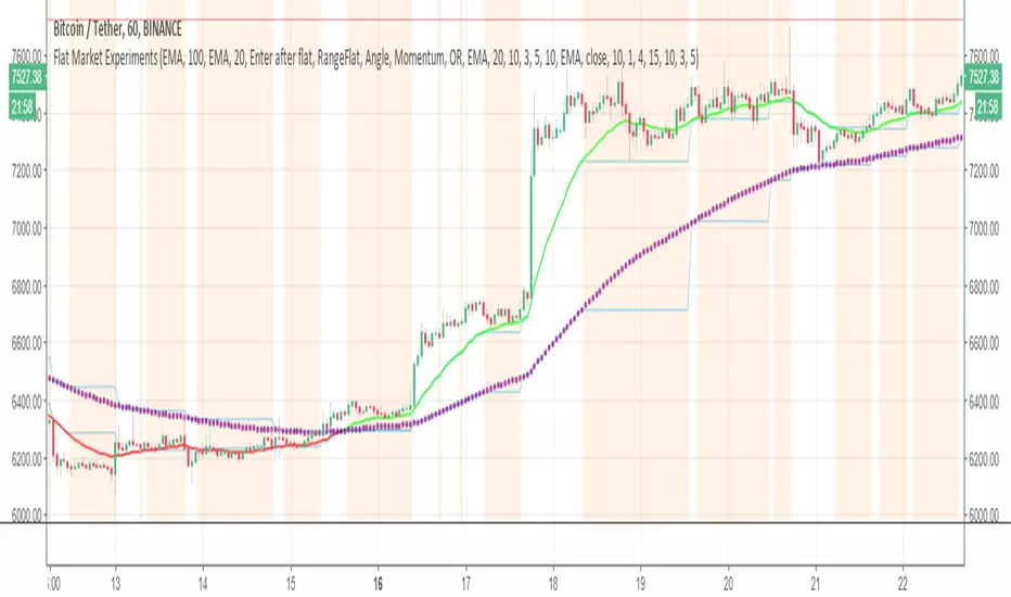 4 separate indicators in one to identify flat/ranging market conditions, with the intention of filtering out MA crosses during periods of flatness (or targetting ranging conditions for mean reversion strats)