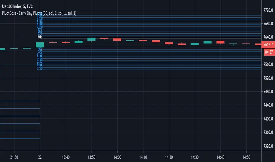 Calculates the pivot points from the first N minutes of the day and overlays them over the entire day