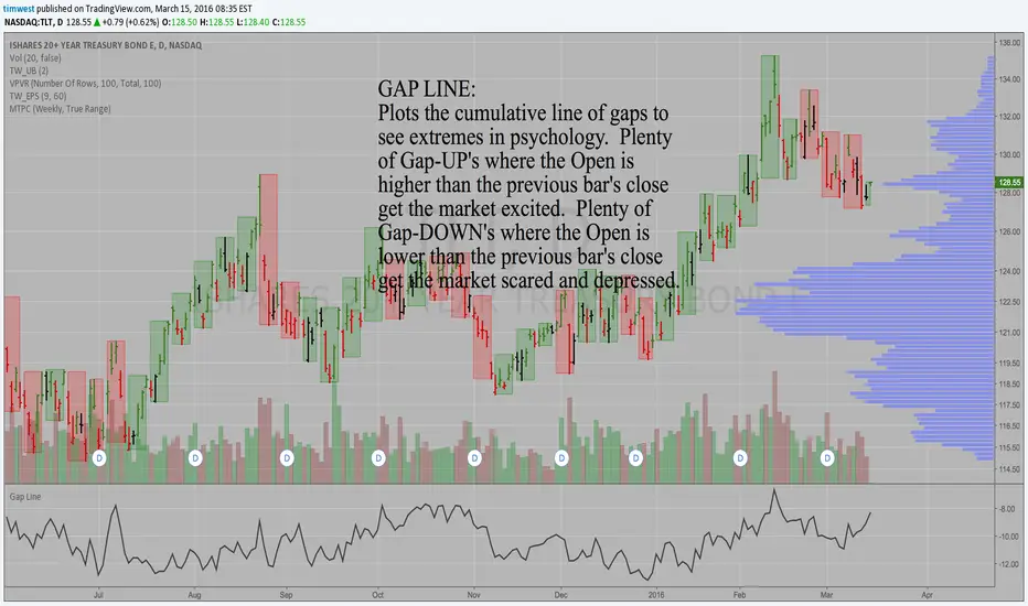 Look for the Gap Line to peak prior to an important peak in the market and vice versa. Look for a low in the Gap Line prior to an important low in the market.