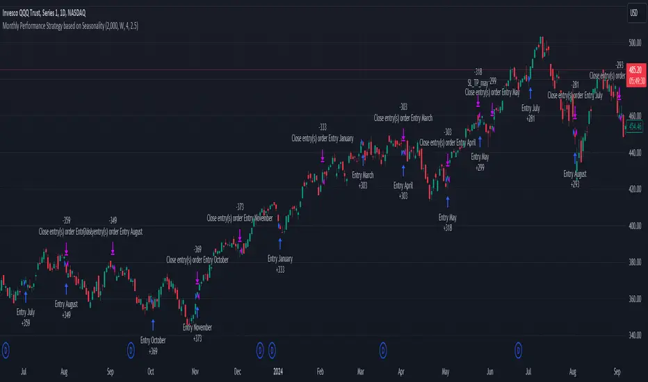 Re-entry on Stop Loss or Take Profit: One of the standout features of this strategy is its ability to re-enter a trade if a position hits the stop loss (SL) or take profit (TP) level during the selected month. If your trade reaches either a SL or TP before the month ends, the strategy will automatically re-enter a new trade the next trading day. This feature ensures that you capture multiple trading opportunities within the same month, instead of exiting entirely after a successful or unsuccessful trade. Essentially, it keeps your capital working for you throughout the entire month, not just when conditions align perfectly at the beginning.