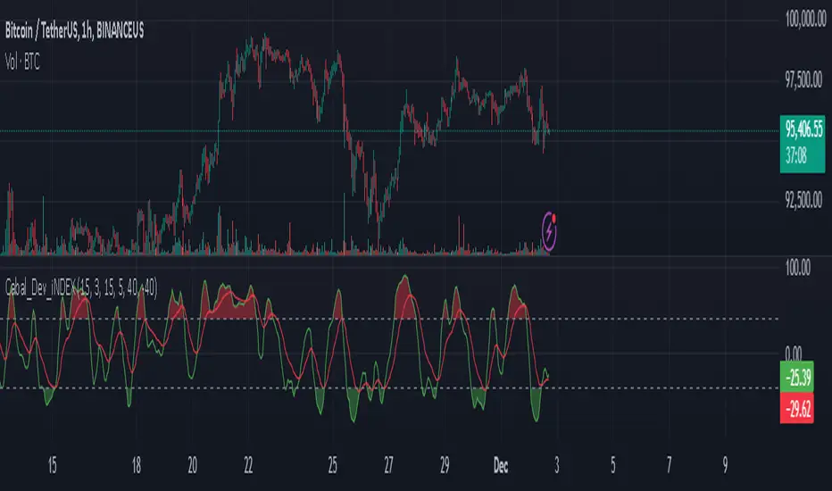 This indicator appears designed to help traders identify potential overbought and oversold conditions in the market, as well as momentum shifts, which could be used for trading decisions.