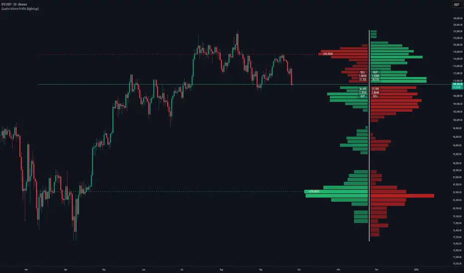 The Quadro Volume Profile [BigBeluga] offers a powerful and visually intuitive way to dissect market activity around price. By splitting volume into four quadrants, traders can better interpret order flow, identify dominant volume zones, and spot potential reversals or continuation setups. Whether you're trading breakouts, liquidity sweeps, or range-bound behavior — this tool adds a structured layer of volume context to your charting workflow.