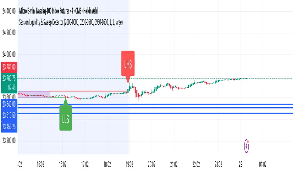 Forex, crypto, and futures traders who want a session-based liquidity and sweep analysis.