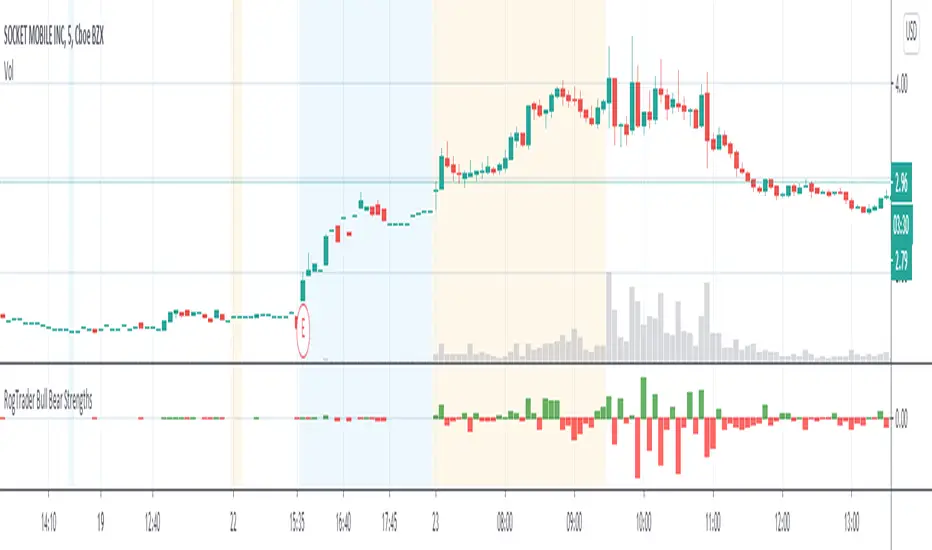 Simplified Bull/Bear Strengths Indicator uses price action, volume flow, and candlesticks to calculate bull and bear strengths, also known as buying and selling pressures.