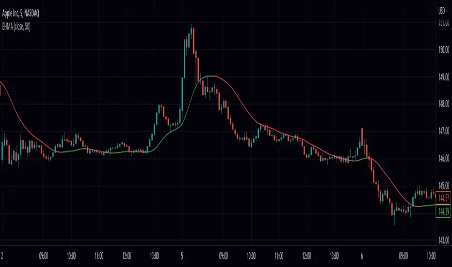 Hello! This is simply HMA calculated with EMA's instead of WMA! I have added alerts for the direction of the average.