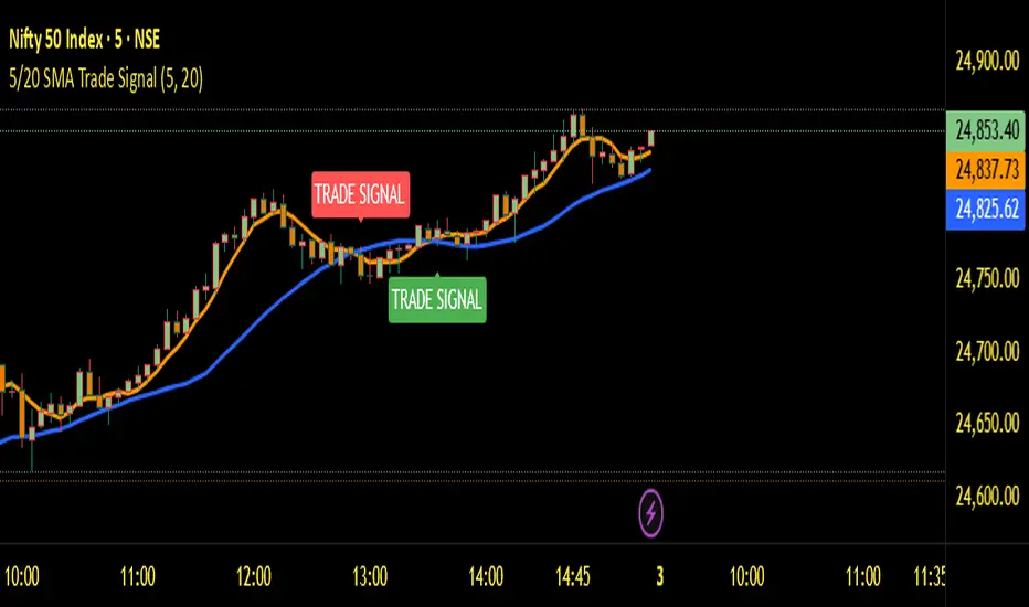 indicator("5/20 SMA Trade Signal", overlay=true)