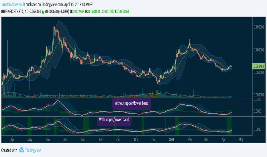 I added the breaches "down", for when the EMA of the macd comes out of the Bollinger Bands. And you can always adjusted the color pallet to your taste! Unchecked some option if you wantPS, I do not trade XVG, it was to have a clean chart ! :)