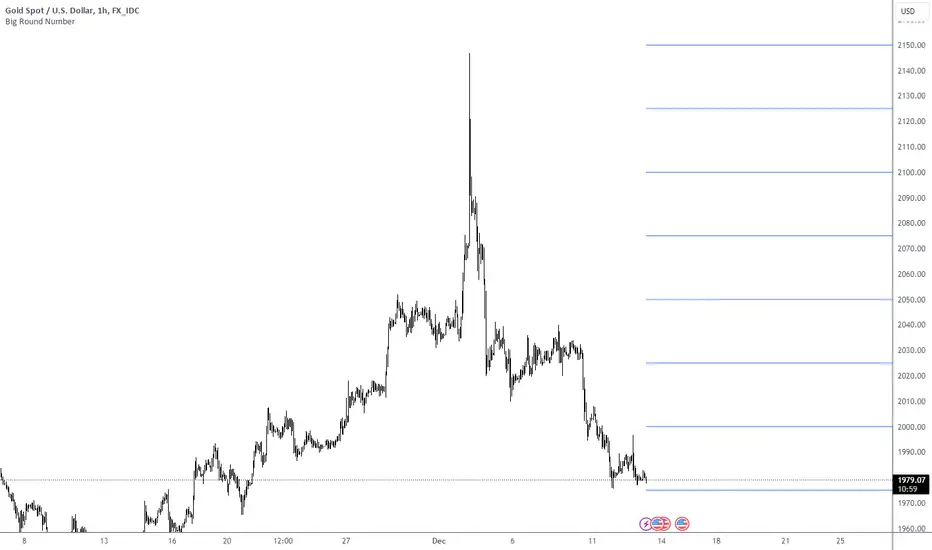 Notes: This BRN Indicator, only work for GOLD (XAU/USD) Chart"big round number" refers to price levels that end in multiple zeros, this indicator make base on 25 point multiple. These levels often serve as psychological barriers and can attract significant attention from traders.