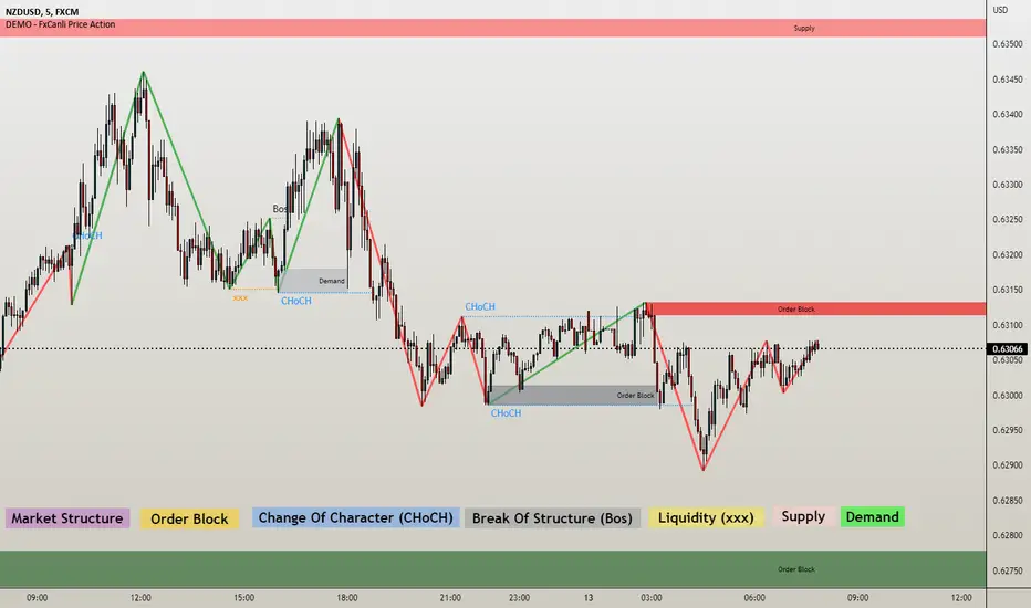 DEMO VERSION of FXCANLI PRICE ACTION Indicator work with any NZD or any DOGE symbols