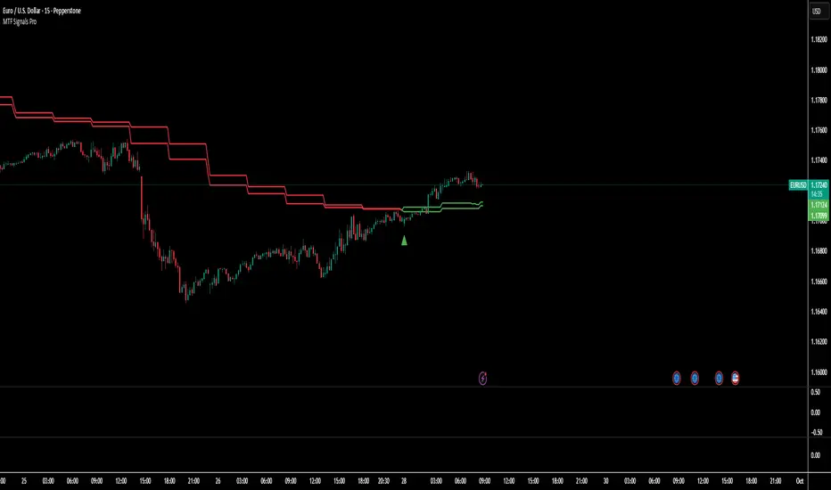 Multi-Timeframe Precision Signals is a non-repainting technical analysis indicator that uses adaptive moving averages across multiple timeframes to generate precise trading signals. Designed for active traders and scalpers, it provides clear entry/exit points with configurable alert options.