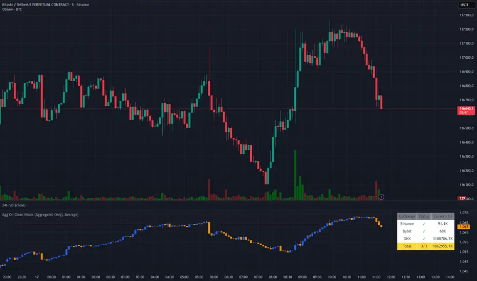 This indicator aggregates Open Interest data from multiple major exchanges (Binance, Bybit, OKX) to provide a comprehensive view of market positioning across platforms.