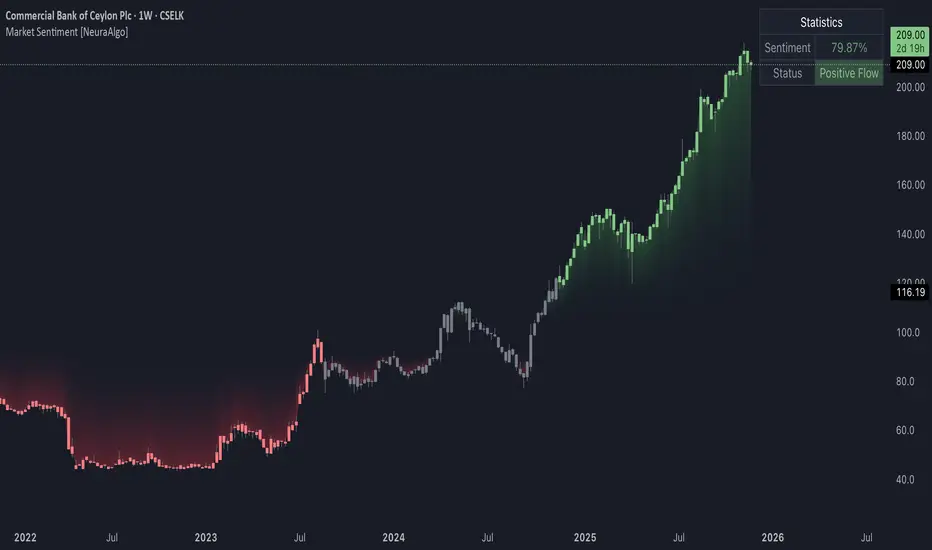 Market Sentiment [NeuraAlgo] combines price action, ATR-based volatility, and impulse tracking to provide a clear and actionable view of market conditions. The BullLine equation ensures that only meaningful bullish moves are highlighted, giving traders a reliable reference for momentum and potential entry points.